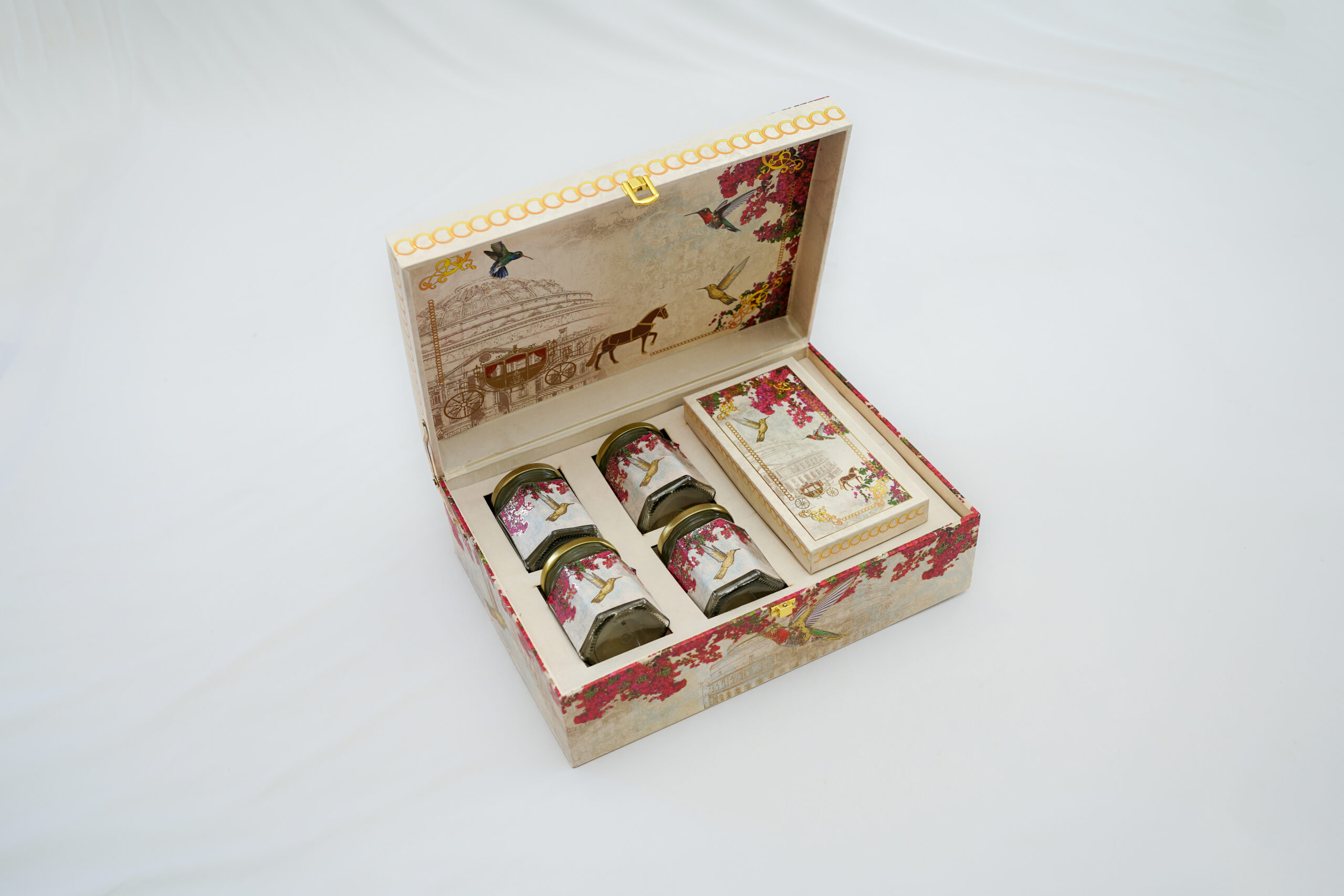 You can curate your own selection by adding any dry fruits or nutritional items of your choice 400 GM (100*4). Plus, our unique design includes a side compartment that holds up to 200g of nuts or a special gift for your staff, making it ideal for corporate gifting or personal celebrations.